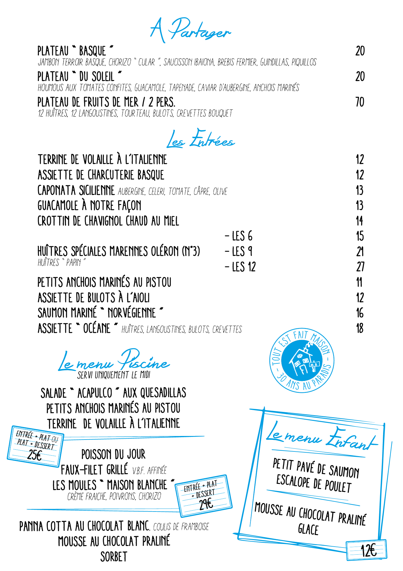 Carte restaurant 2024 - Entrées, menus - Maison Blanche